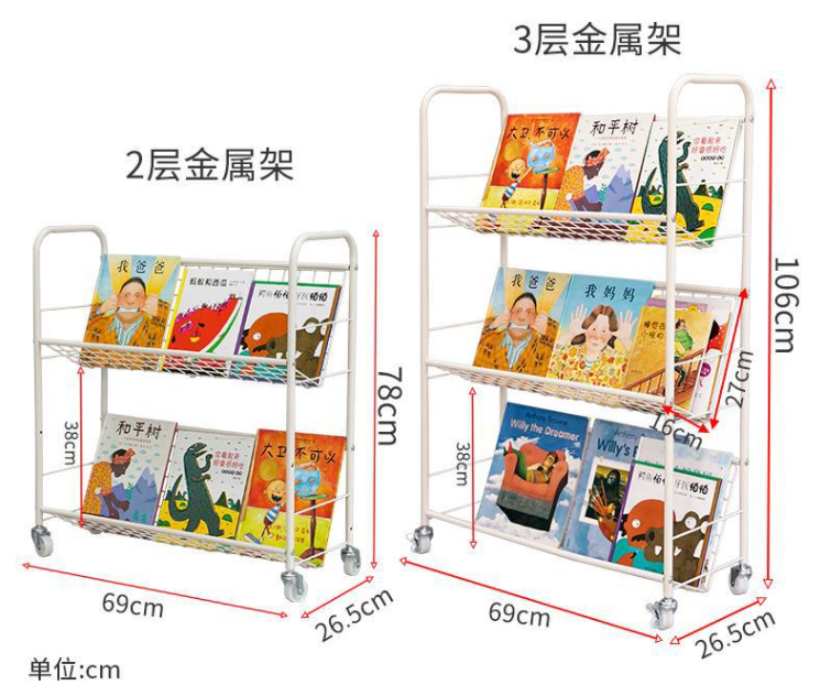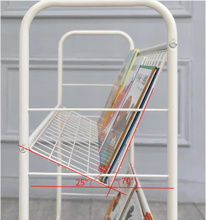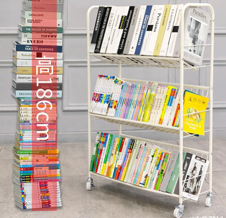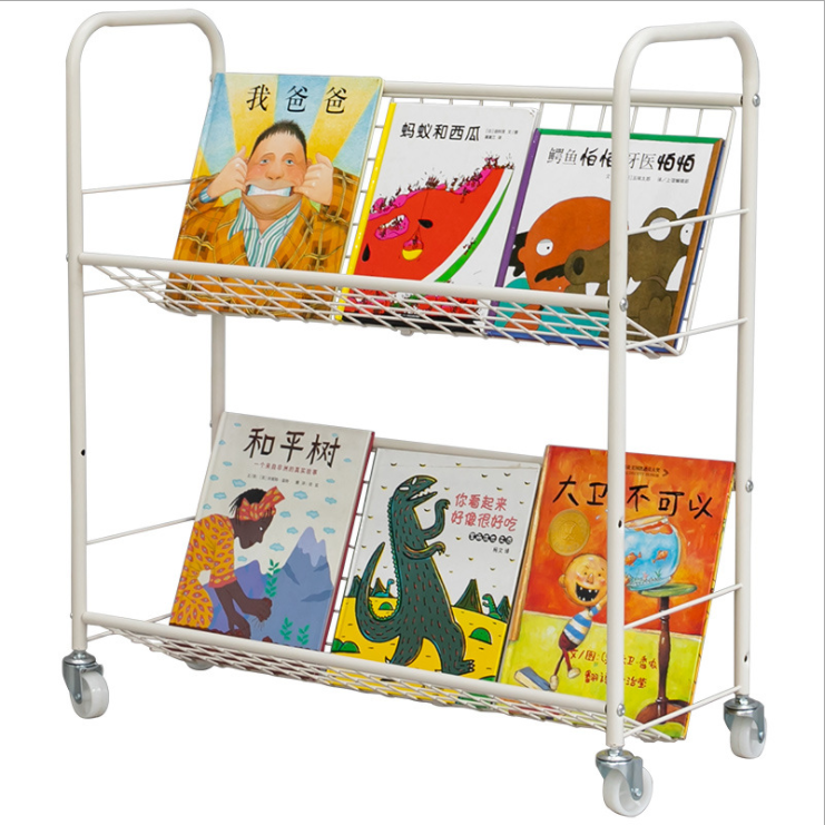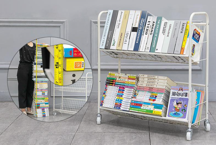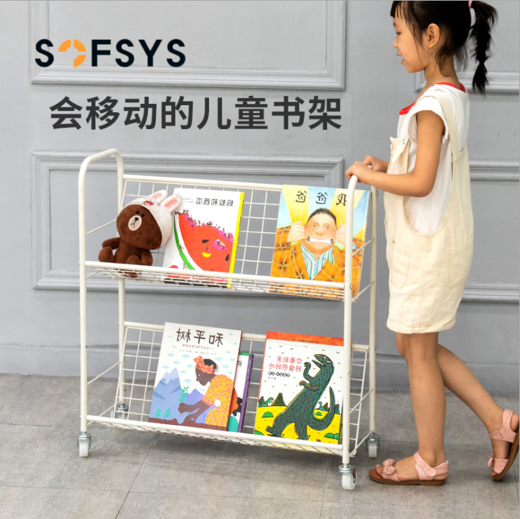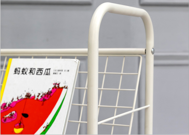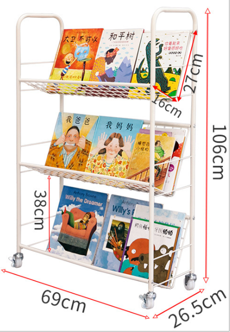 Children move storage rack, easy to move, let the baby fall in love with reading. New carbon steel pipe, better load. No paint, no rust. Tilt angle, the book does not fall. Nylon pulley, moving smooth, push no effort, mute no noise.